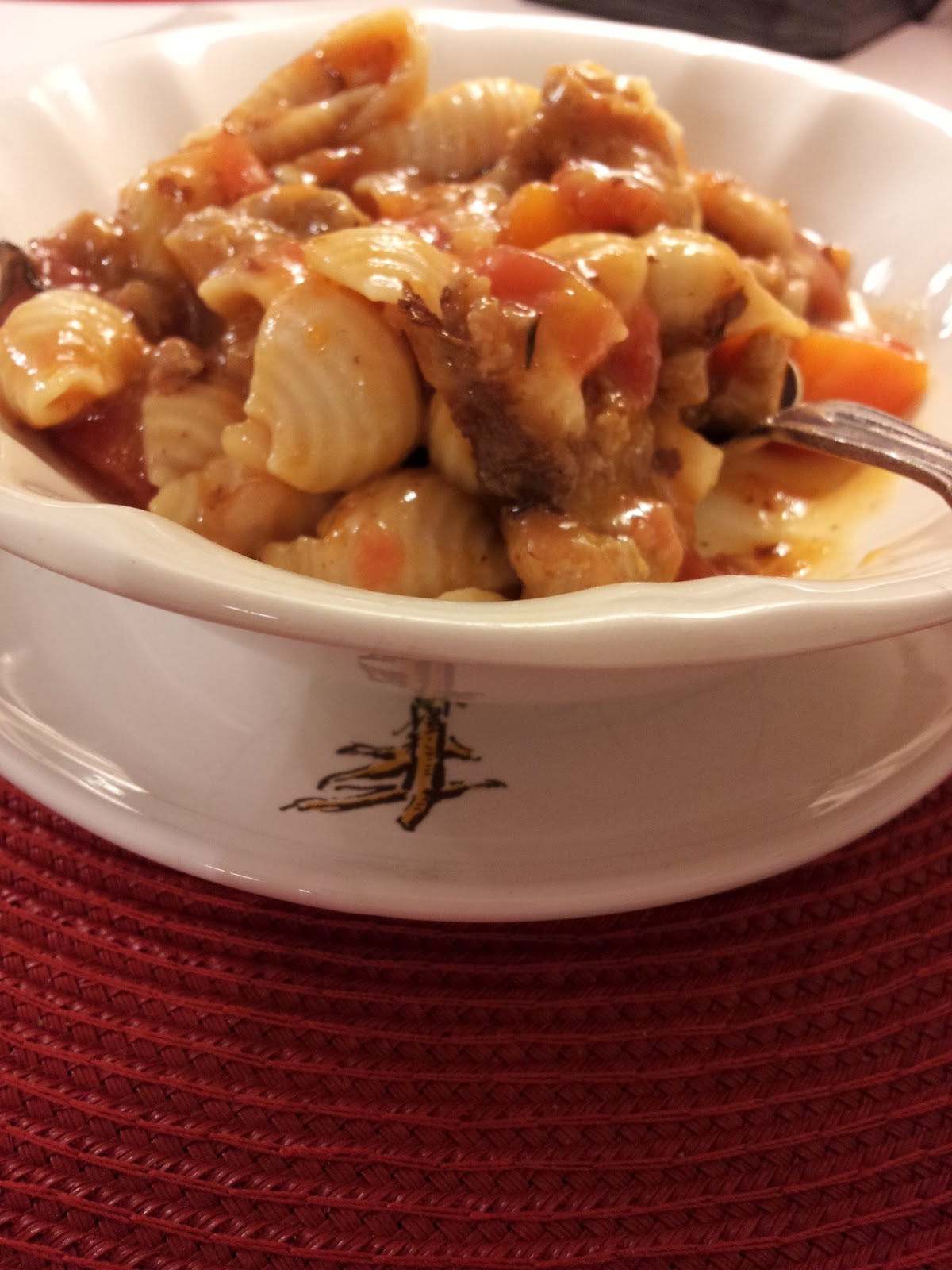 While looking on Pinterest, I found a delicious-looking soup with turkey sausage, beans, tomatoes and pasta. Mmm, it sounded yummy, so I decided to try it. Saturday also turned out to be a very cold day here in Tennessee, so it was a perfect day for a comforting soup!