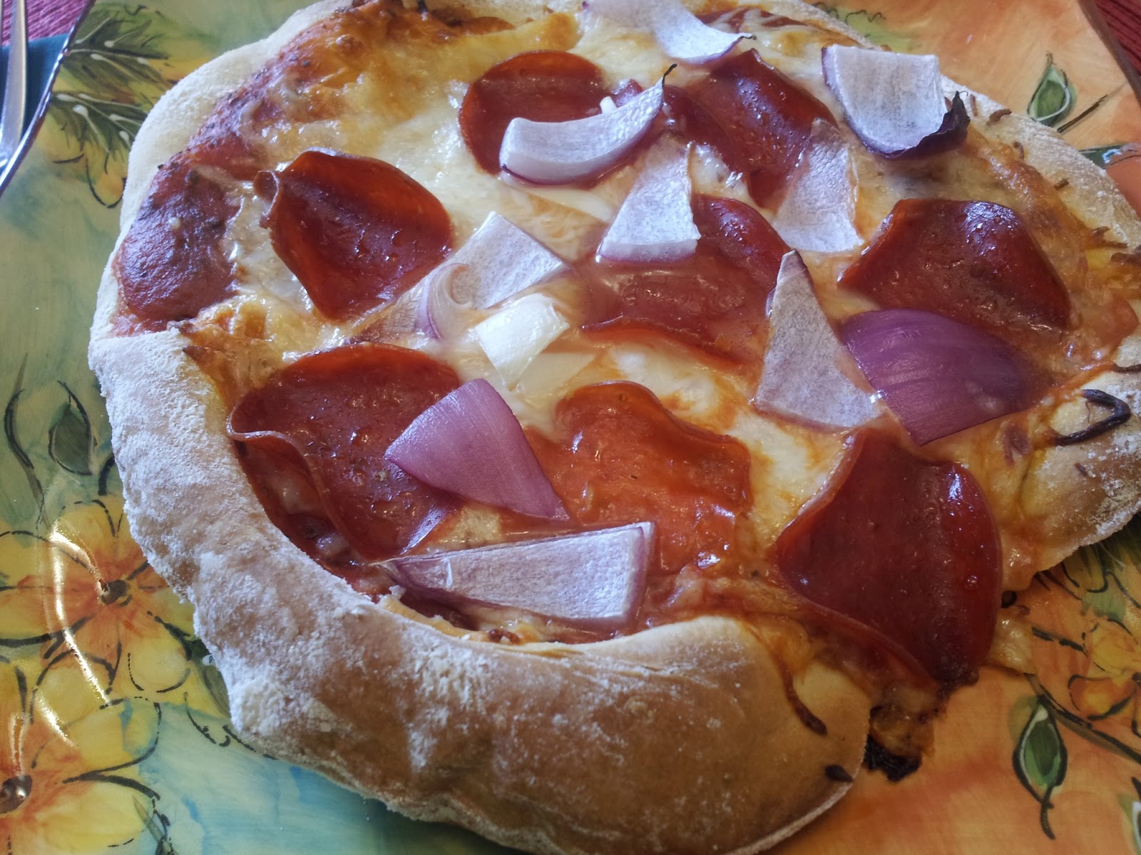 However, I have a great recipe that I made last week to share with you today. It would be a great recipe to serve on Sunday night after church while having friends over! The key to having guests over is doing prep work ahead of time. That’s what I love about this recipe for Easy Pizza Dough. You can make up these individual pizza crusts, par bake them, then pop them in the freezer. I found this in Southern Living years ago, and it’s been one of two recipes I always use for homemade pizza. These make a yummy thin crusted pizza.