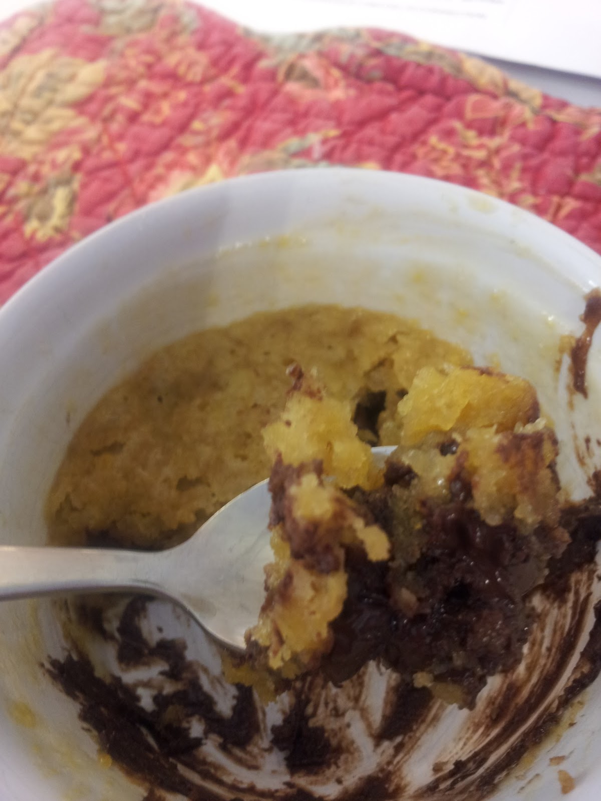Chocolate Chip Cookie in a Cup from Number 2 Pencil. I made this recently. First I made a trial cup. I let my resident taste tester sample it (my husband!). He gave it a double thumbs up! It only needs a little scoop of vanilla ice cream on top. Beware! Once you read this recipe, you will know that you can have a chocolate chip dessert in literally less than 5 minutes! You have been warned!