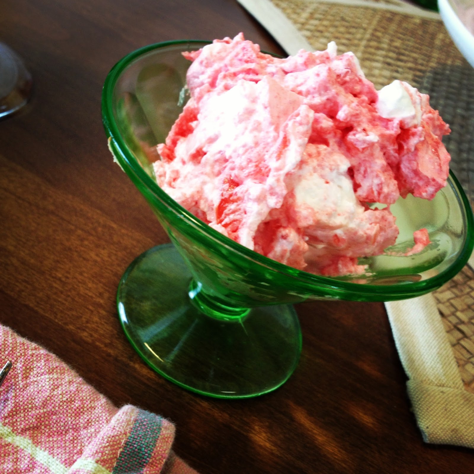 This is called Orange Fluff Jello Salad; she used Cherry Jello instead.