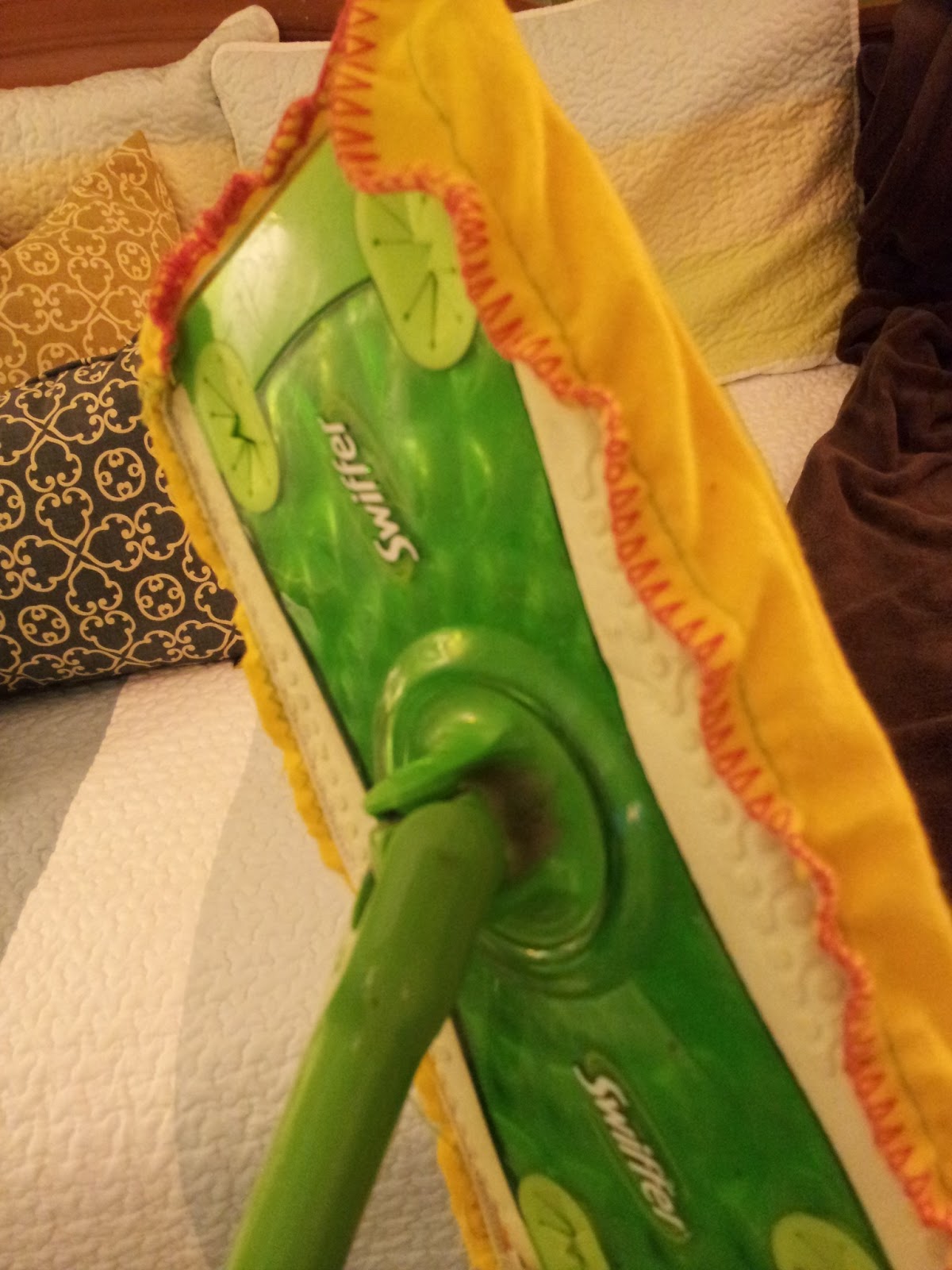 I took 30 minutes one evening this week and made FOUR Swiffer covers! No joke – this is a super simple task for even a beginning sewer. These have elastic around the edges. They kind of look like a shower cap made out of microfiber – only they’re oblong instead of round. =) When it gets dirty you just pop it into the washer. No more buying the pricey disposable cloths! The microfiber really grabs the dirt and dust! I’m super happy with the results.