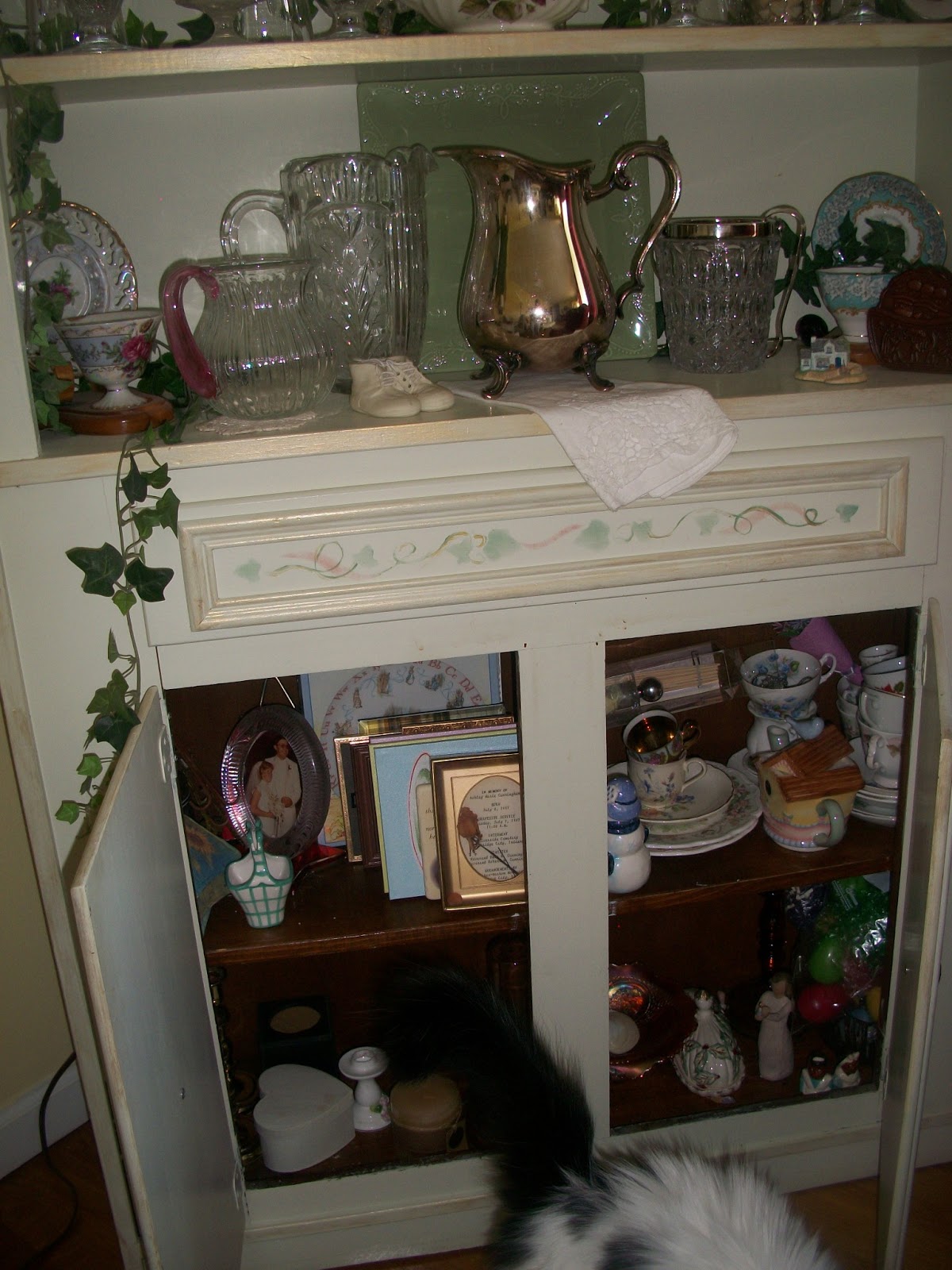 On Saturday I got a jump on things and straightened up the decor that I keep inside the cabinet…