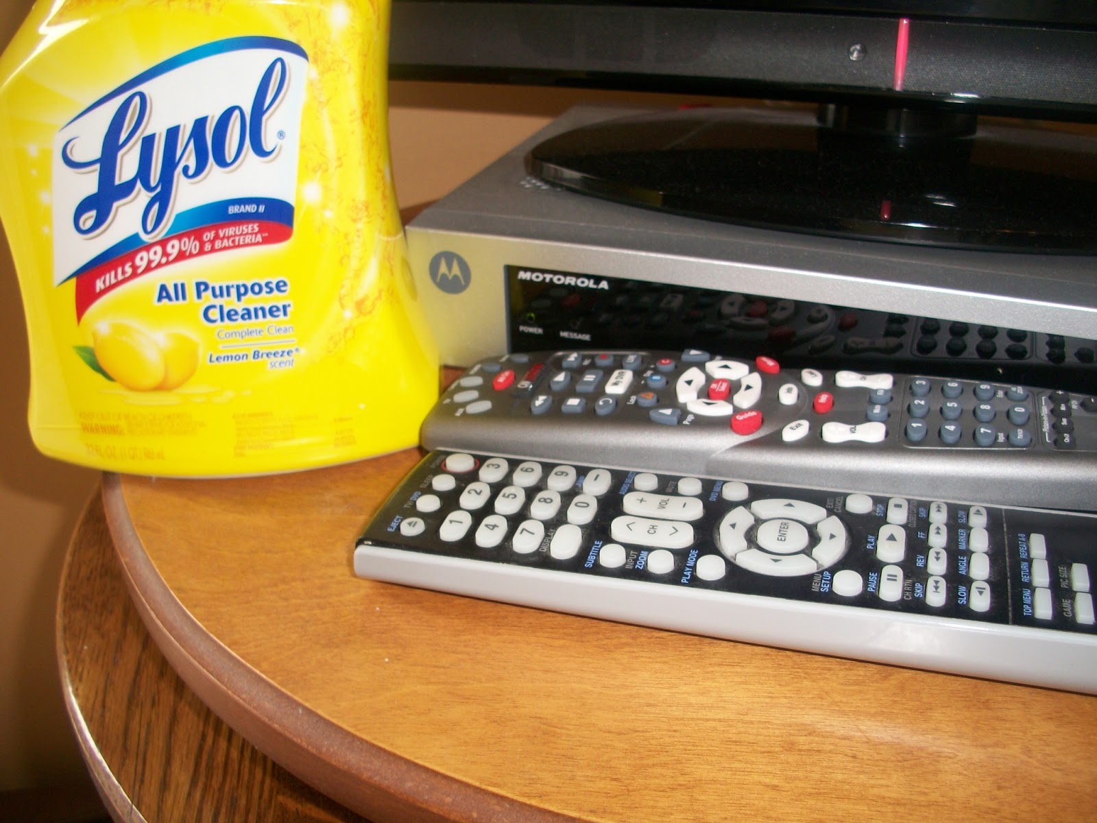 I cleaned the remote controls, my computer mouse, as well as the light switches, the stove knobs, kitchen cabinet handles, sink faucets and door knobs!