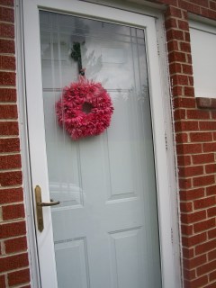 I hung my Pink Daisy wreath. It’s just Happy!
