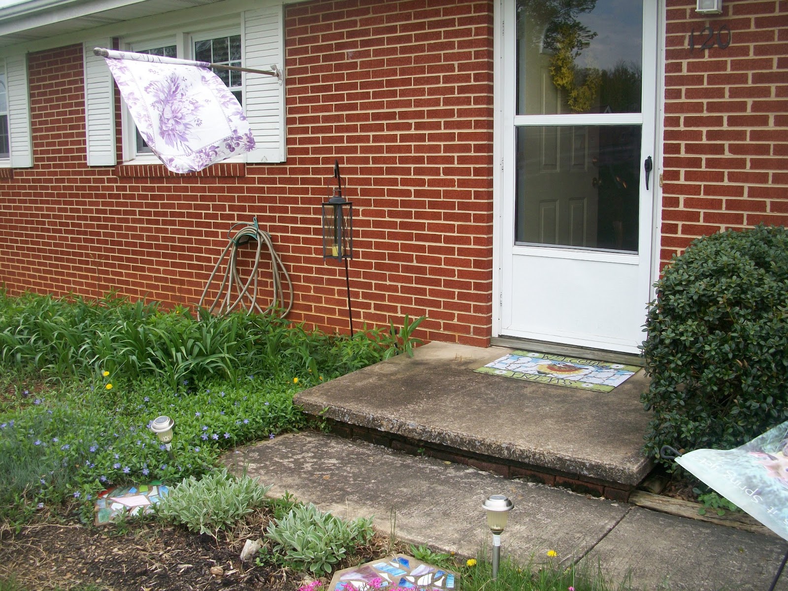 I swept the porch and walkway, wiped the lantern out, and weeded the flowers at the walks.
