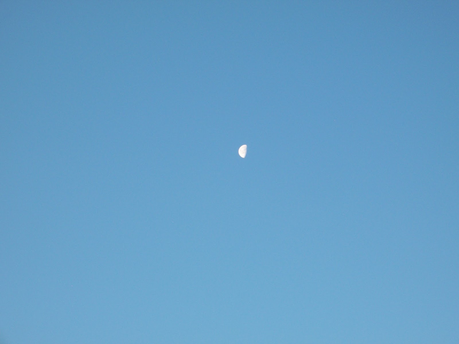 Yesterday morning when I got up, the sun was rising over the hillside in all its glory. Not to be outdone, a half moon was shining brightly as well. It was a glorious sight! I looked up at the moon and said to my husband, “I love thinking about how God makes the moon reflect light of the the sun. It’s amazing!” I snapped this picture of the moon before grabbing my cup of coffee and heading to my Quiet Place for my devotions.