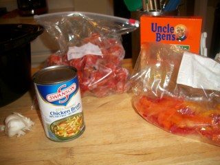 Even though we were gone Friday afternoon through Saturday until 11 pm, I managed to get a meal in the crock pot Sunday morning. After eating out on our little weekend trip, I knew we’d both rather eat at home after church. I did a survey of some of the recipes I’d pinned on Pinterest and found this great crock pot recipe. I had everything either in the freezer or pantry! I altered it by adding chicken breasts instead of shrimp. It turned out great. If you’re needing a one dish meal where you truly just dump all the ingredients in and go, you’ll love this recipe!