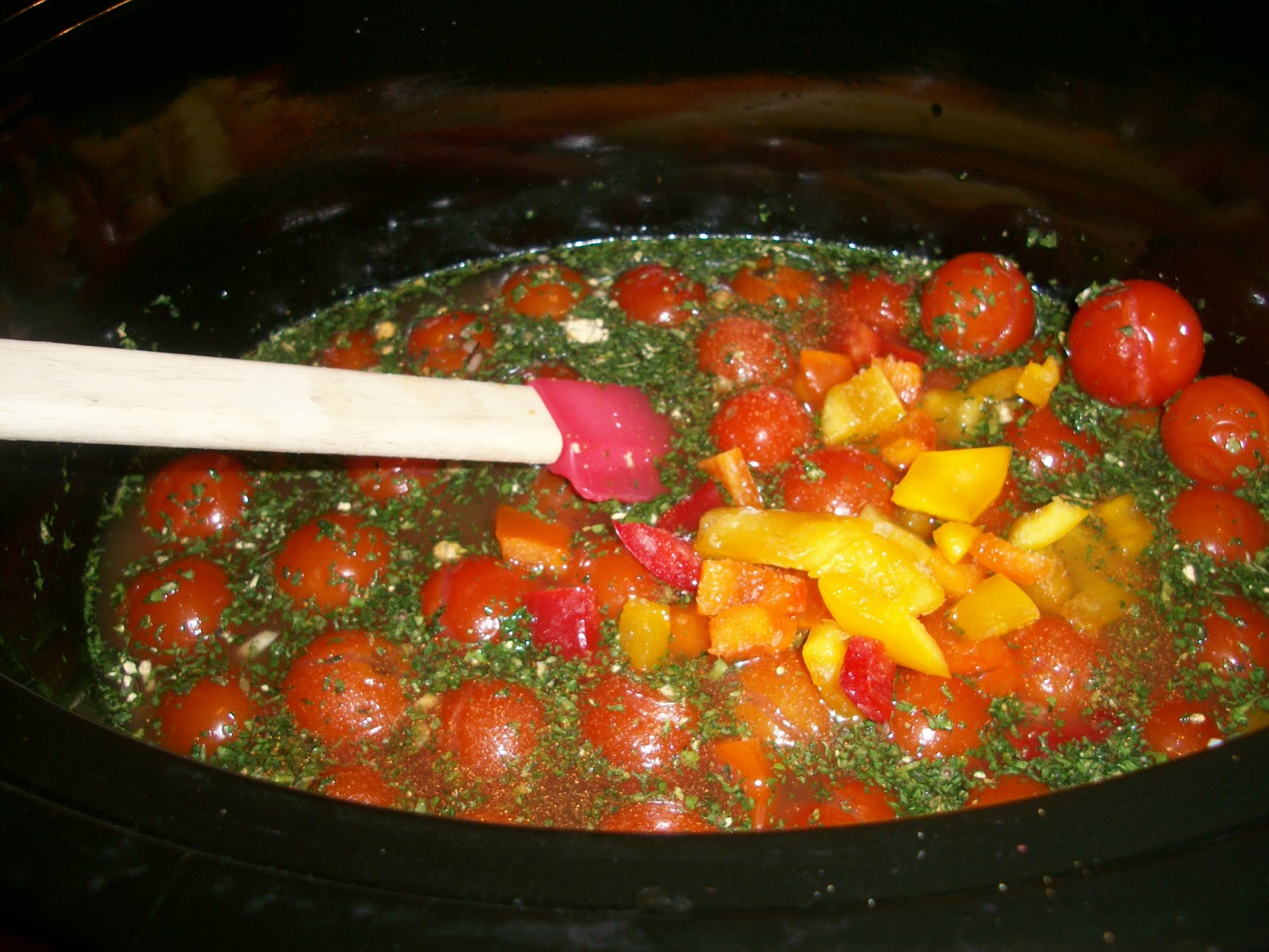 | I used frozen tomatoes from my garden in place of the canned tomatoes. |