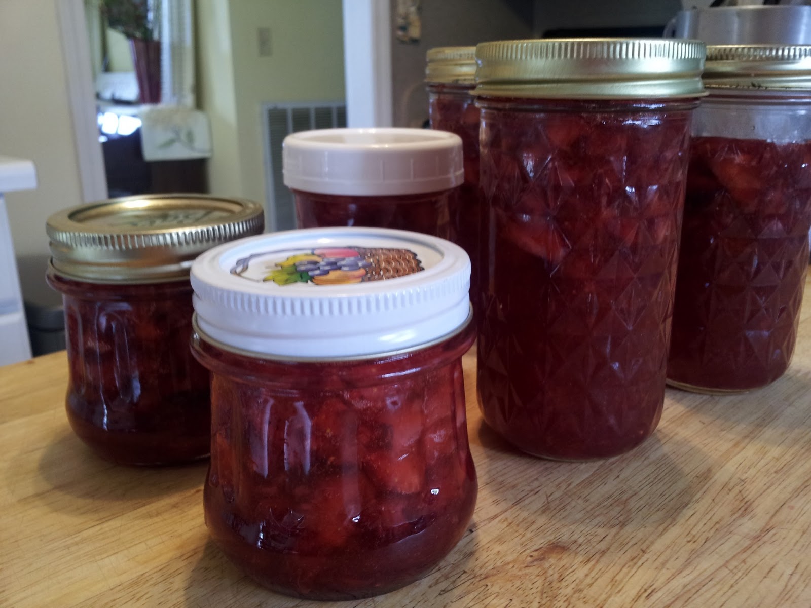 | One batch was all I needed to make this year. Added to what is in the freezer already give me 18 jars. I believe that will get us through until the next strawberry season! |