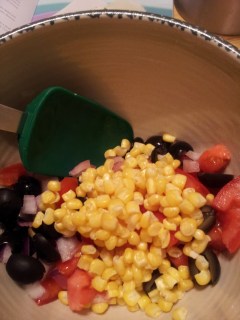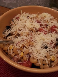 Here’s the Italian Salad I made. It looks like whole wheat pasta, but it’s not -it’s the balsamic dressing that goes over the salad that darkens the pasta. I love cold pasta salads in the summertime! This was good! You could add or delete ingredients to suit your family’s taste.