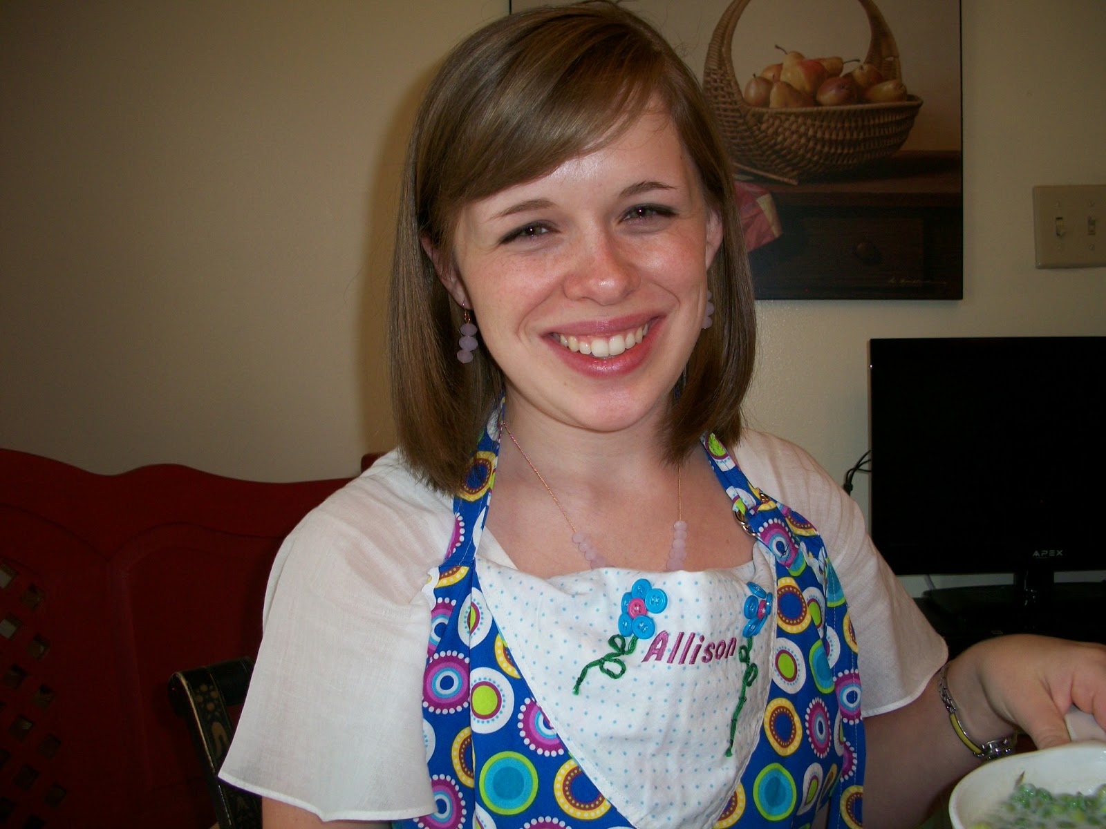 Here’s Alli, proudly wearing her new apron, made as an engagement gift for her by a sweet lady at church. Is this not adorable? Alli said, “Who wouldn’t want an apron with their name on it?!”