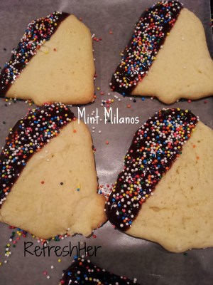 The other cookie was found on Better Homes and Garden’s Instagram baking picture of the week – Mint (Spiked) Milanos. I wasn’t interested in the “spiked” version, so I tweaked the recipe and came out with a fantastic little gem of cookie. Can you tell I LOVE chocolate and mint? These recipes just call for my attention and my tastebuds! These were husband approved, too! He’s such a great guy and servant – “You can’t serve those un-tasted! What if they’re bad?!!!!!!!” Whatever, he can have whatever he wants, since he has my heart, too! Not only are these cookies both delicious, but they’re really pretty!