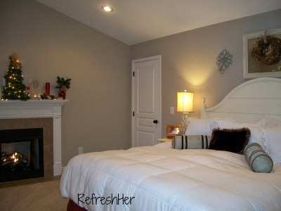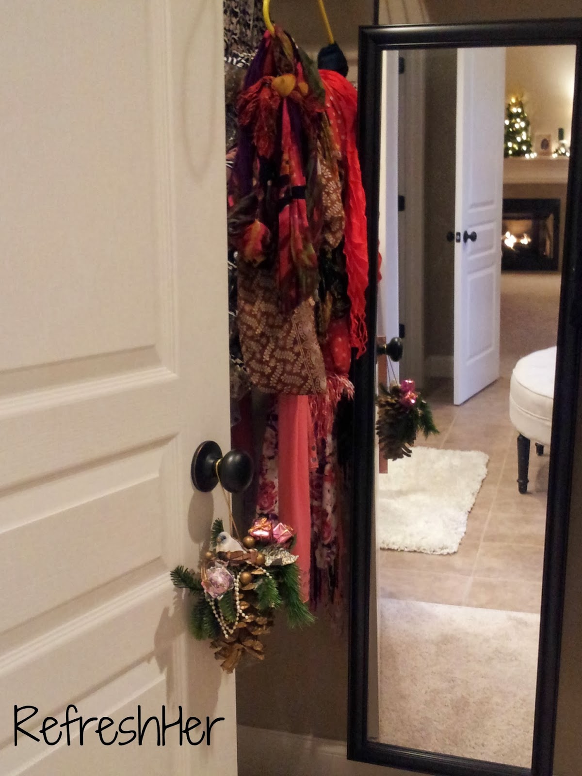I have a full-length mirror hanging inside my closet. The first reason is obvious, but I also hung it there so it would reflect the fireplace in the bedroom. I love that I can see it there! |