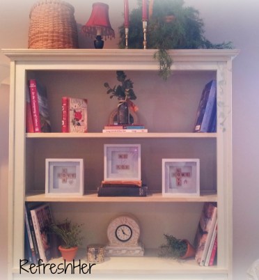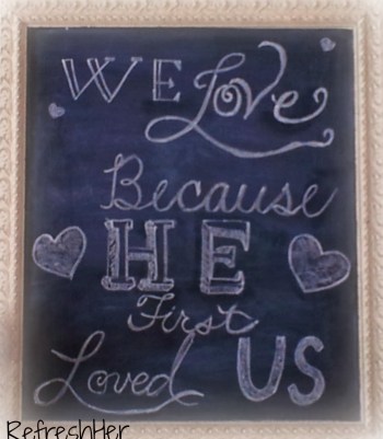 If you follow with any regularity at all, you know that I LOVE seasonal decorations. So, now that it’s February I had to change things up a bit. I started with my chalkboard on the living room mantle. A year ago last January, I posted about painting my old, faded picture with chalkboard paint. Recently I had a couple of sweet friends ask how I went about doing that. So, Deidra and Aaron, you can go here for the details. Ask and ye shall receive!