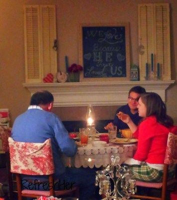 Monday was a day for comfort. The comfort of home. The comfort of a hug. The comfort of just being together. The comfort of sitting on the couch together and talking. The comfort of having dinner in front of the fireplace. The comfort of grasping hands in our mealtime prayer. The comfort of playing games after the dishes were cleared away. The comfort of one another’s presence.