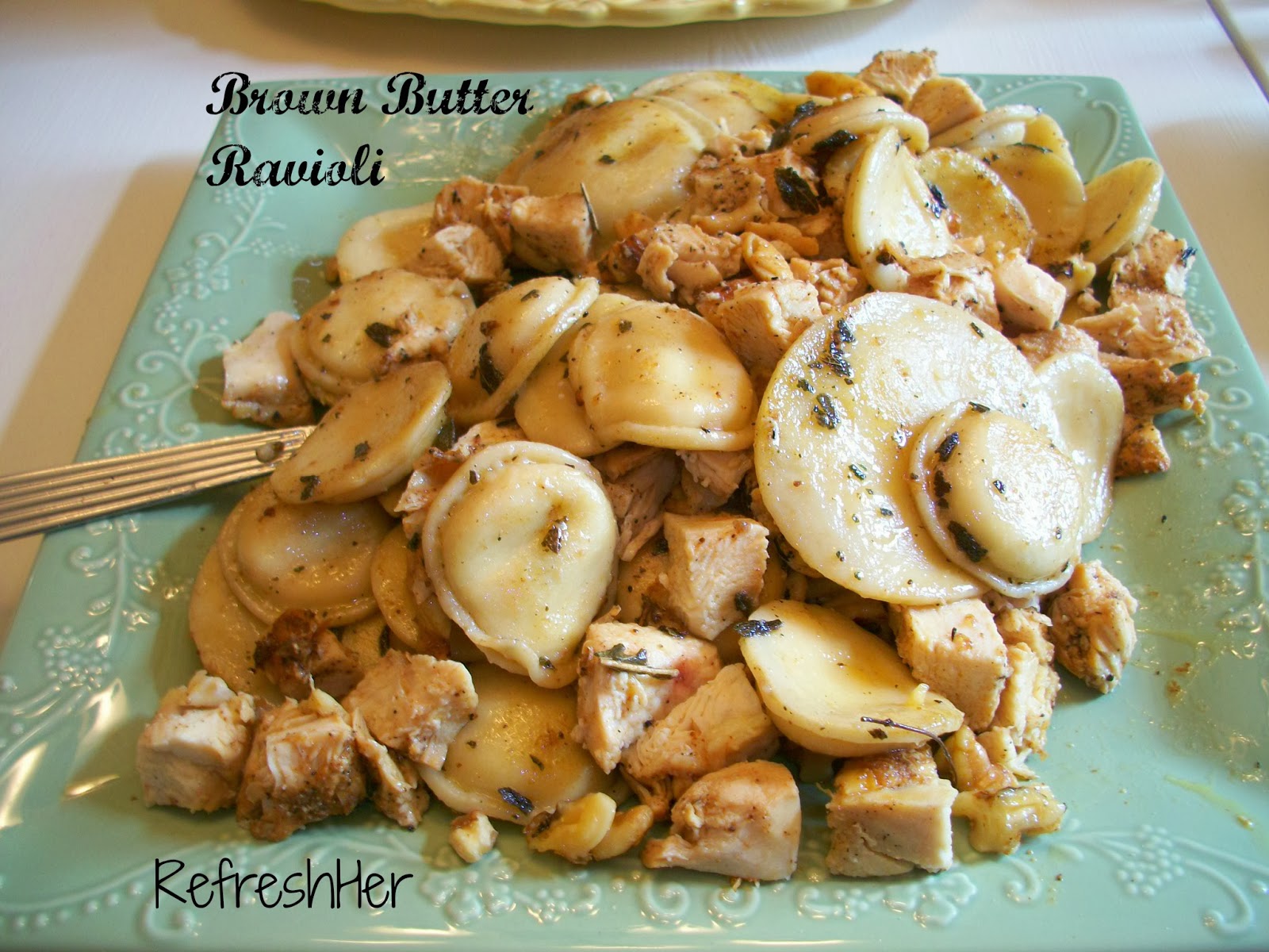 Brown Butter Ravioli with Rotisserie Chicken, Toasted Walnuts & Crispy Sage