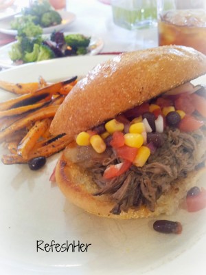 - I pinned a recipe for a Spicy Cuban Flank Steak Sandwich some time ago that I was really anxious to try. Saturday night supper this past weekend gave me that opportunity. I got a good sized piece of flank steak on sale at Ingles and I knew the time was right! Saturday night suppers can be a bit more relaxed, and with a recipe that’s cooked in the crock pot, I simply got the meat seasoned and turned the crock pot on right after breakfast so it could cook all day. The meat gets so tender, and the beef broth and lime juice keep it moist and delicious while it’s cooking slowly all day. This was a great meal! Here’s the whole menu: