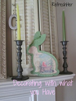 That little bunny was found at the Dollar Tree! I’m borrowing the candlesticks until someone gets a home to put them in! Thanks, Alli! |