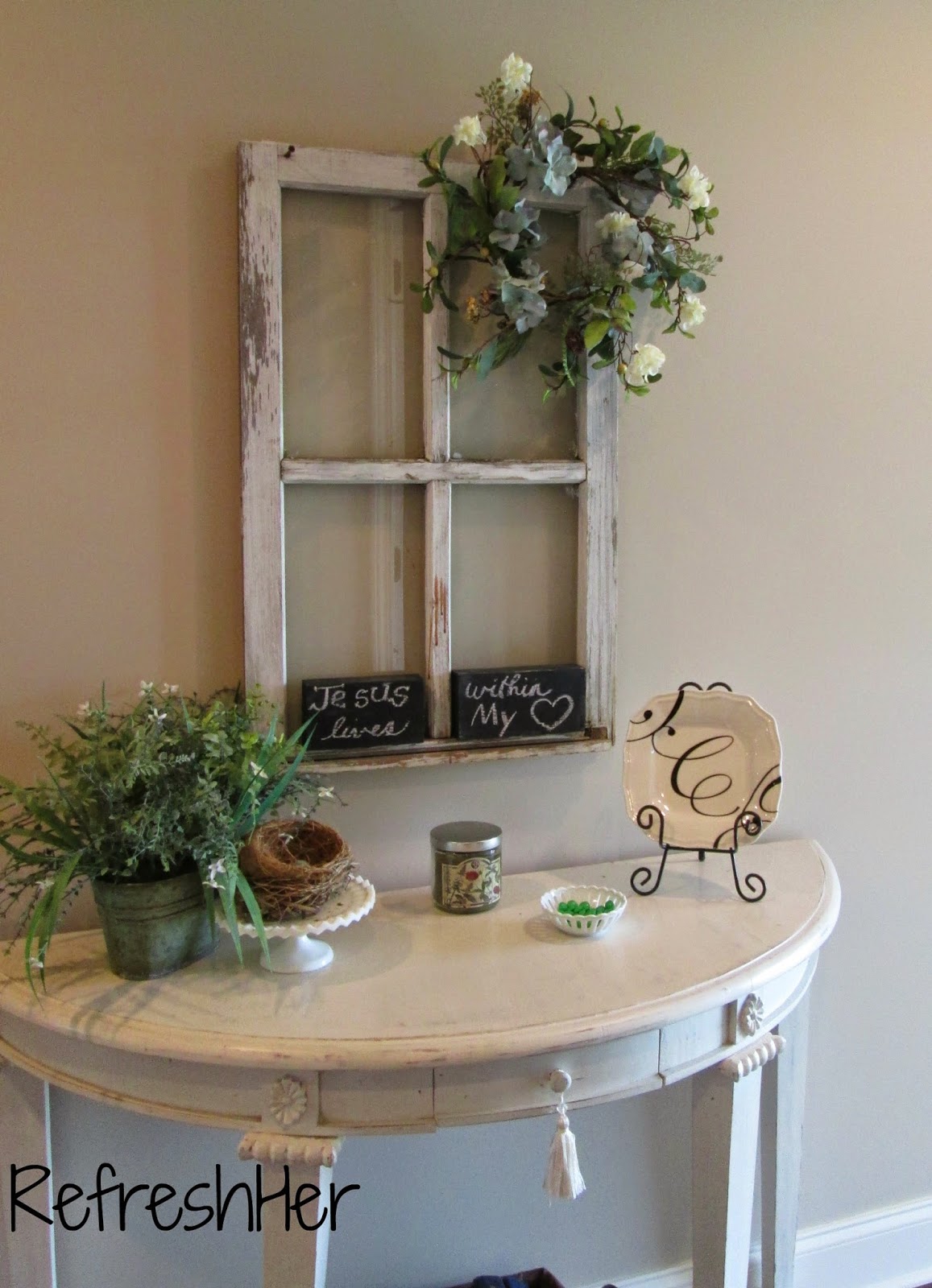I love all my pins on Pinterest for springtime, but realistically I know I can’t buy or make everything on that board. What I do is look for inspiration. I’ll take what I have, move it around, and come up with my version of that look. Here’s what I’ve done so far…