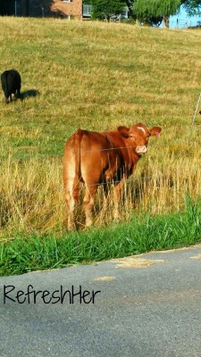 Last weekend when I was walking early in the morning, I passed this cute little cow. It stopped eating long enough to give me the once-over and allow me to snap her picture, then proceeded to finish its breakfast.