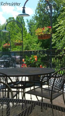 - If there is outdoor seating at a restaurant, we always ask to sit outside. I’m always surprised that there’s seldom anyone else out there with us. Why not opt for a seat under a shady umbrella table? You’ll be surprised how cool it is, even if the temps are hot.