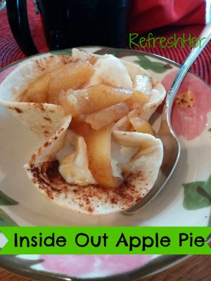 How about a little twist on Apple Pie to freshen Up your Friday?! This is a pie that’s inside out because you put the ice cream in a baked tortilla, then pour the filling over the ice cream! It’s easy, quick and has less calories.