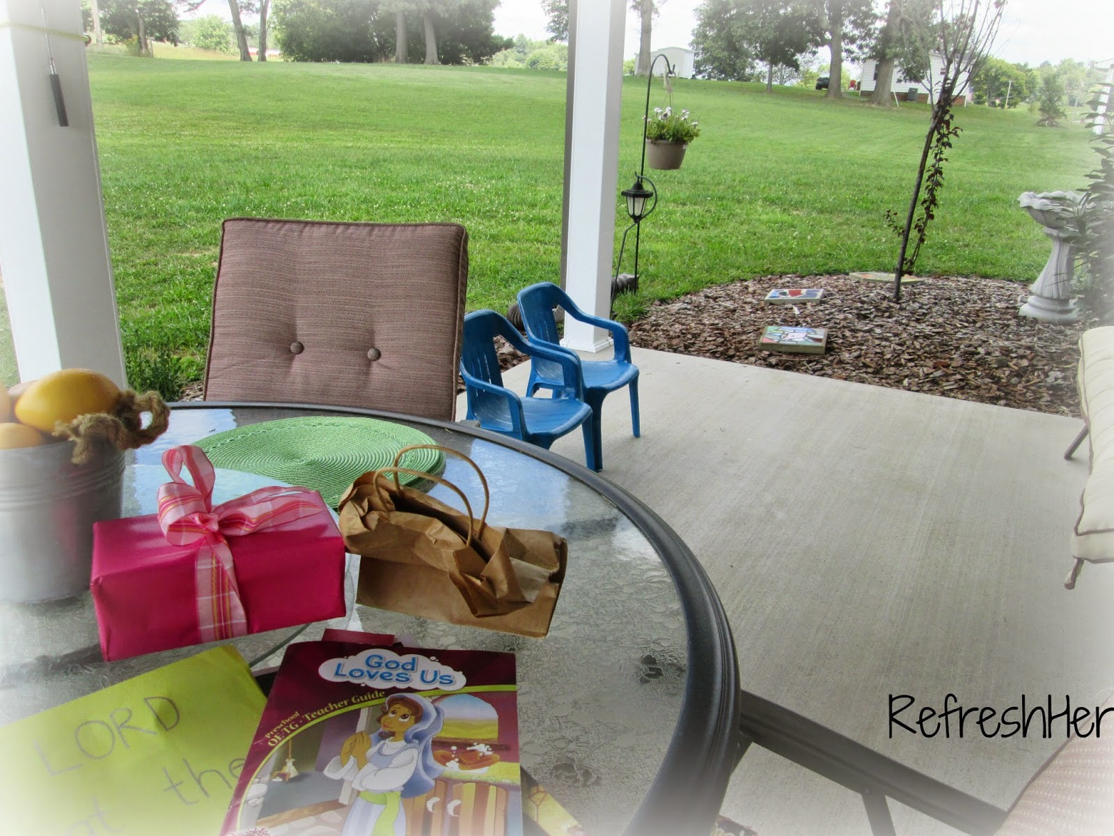 If you peek onto my back porch on Tuesdays at 4:00 that’s what you’d see – Oh, and my happy face beaming at those two precious children!