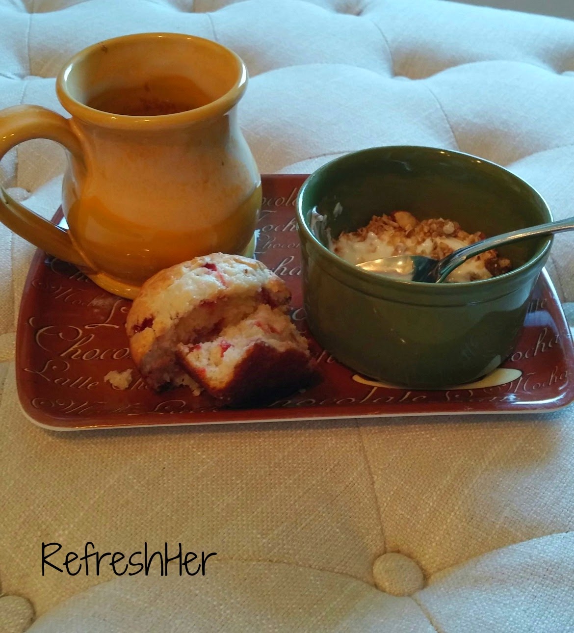 - Pack up breakfast. Morning time can be hard with getting medications started, showers, etc. A basket with muffins, yogurt, fruit and granola will be a huge help in starting the day.