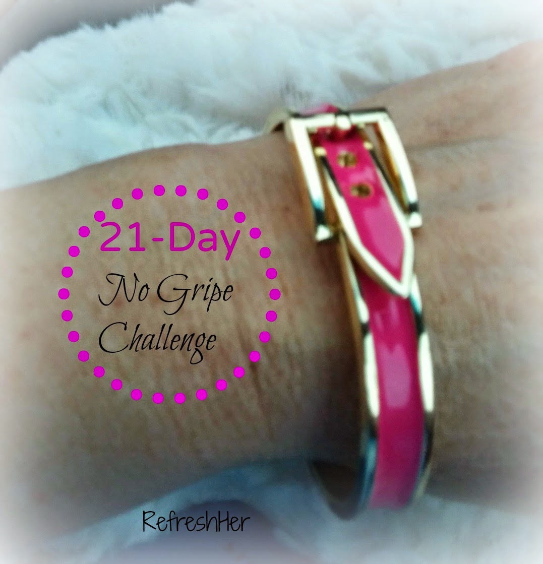 A friend and I took a 21-Day challenge not to gripe. Here’s the deal – we had to put on a bracelet and any time we gripe or complain, we move the bracelet to the other arm.