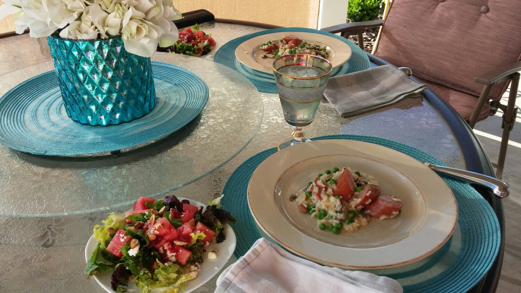 It also lives up to its name in being colorful on the plate! I served it with a version of this watermelon salad and it was a great meal served out on the patio.