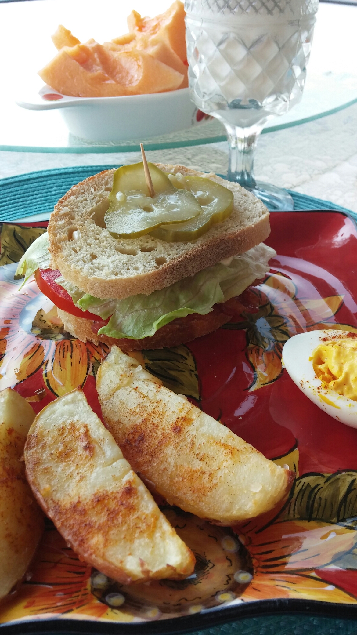 I know I’ve said this before, but we LOVE eating our on our back porch. We eat every meal we can out there. We soak up the beauty of the countryside, the quiet, and the slowed pace. But the other thing about this picture that I’m loving are the summer meals, like blt’s with fresh tomatoes, corn on the cob and cantaloupe. It’s simplicity and deliciousness at its finest!