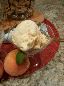 They were delicious in our morning yogurt, and on ice cream, but my favorite way to use them was to put them IN ice cream! I found a recipe on Cooking Light for Homemade Peach Ice Cream just before the peaches were brought to our door. As Rachel Lynde from Anne of Green Gables would say, it was “Simply providential!” So after a little bit of mixing and freezing this was the result…