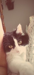 While I was praying one morning, Liza Jane came and pushed her way between my arm and the chair and then put her paw up on my face!