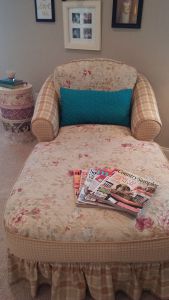- I added my recent fall magazines to the chaise lounge for times in the evening when I have a minute to peruse through their pages.