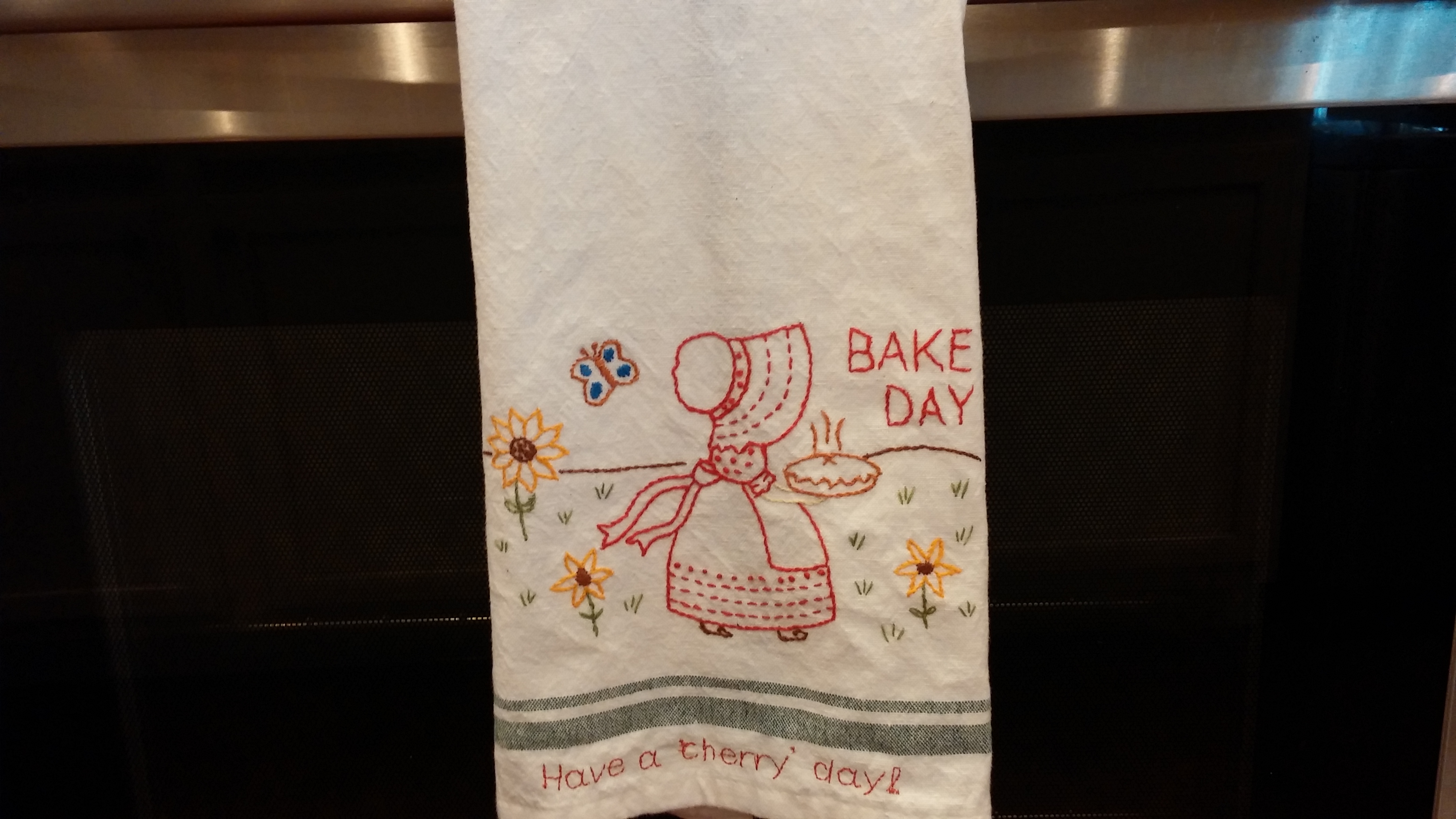 See that pretty embroidered kitchen towel hanging on my oven door? It was hand stitched by a friend. When it was given, she let me know that it was full of mistakes – little “imperfect stitches.” Really? I look at it and I see the big picture – a sweet little girl, adorned with a bonnet and apron, delivering a cherry pie on Baking Day! I also see the heart of the stitcher, if you will. She spent her time and effort making that for me! I love it and I dare anyone to wipe their dirty hands on it – I have store bought towels for that purpose! This is my treasure, set aside for my enjoyment – imperfections and all.