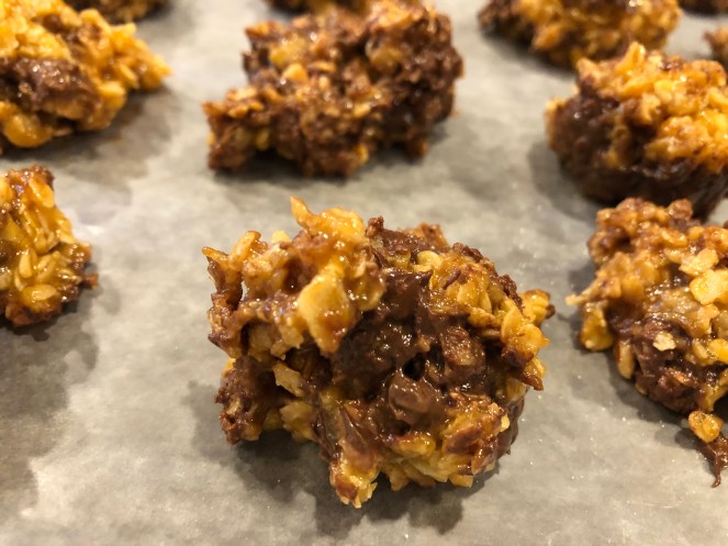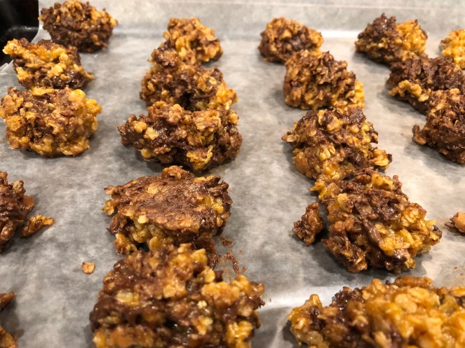 I ran to Pinterest and found what I’m sure is the best recipe for a new flavor of No-Bake cookies! Little Dairy on the Prairie had a great looking recipe. It turned out perfectly! There’s LOTS of butter and sugar, but this recipe made about 4 dozen cookies, so you have to take that into consideration. Like the traditional no-bakes, these were fast and easy! Oh, and my neighbors declared them the BEST cookies they’d ever had! Mission accomplished!!