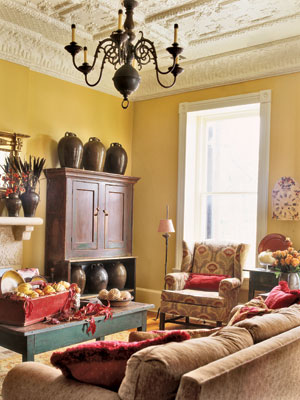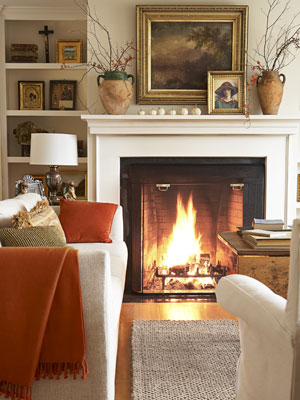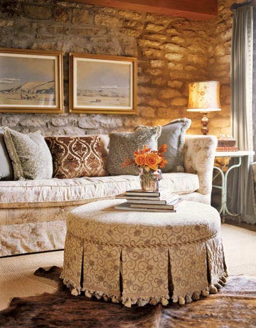 | Little tip – Use books to stack under an item to make it taller. Books are a great decorating tool! Picture from Country Living) |