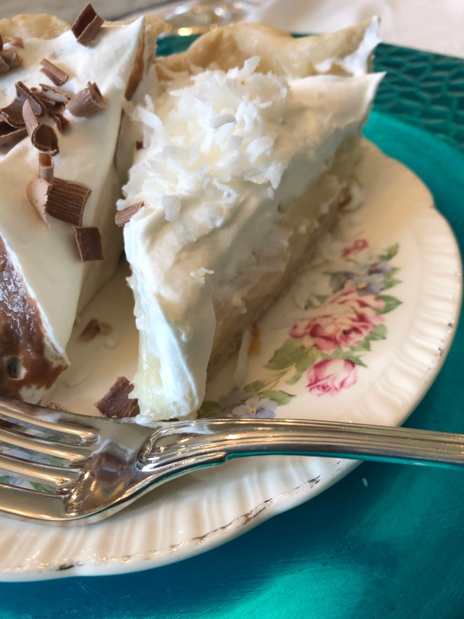 For dessert I made two pies from Cooking Light – Chocolate and Coconut.  Both are still decadent!