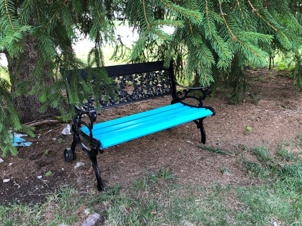 This week while visiting my folks in Kentucky, I did a project – I painted their outdoor bench. Two colors of paint, a little time, and a LOT of sweat (it was Hot!), and this bench was truly given new life. It went from this…