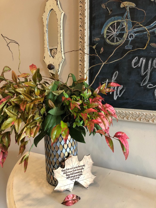 Tell me…do you use fresh things from your yard? What different container are you thinking about using for your next vase?