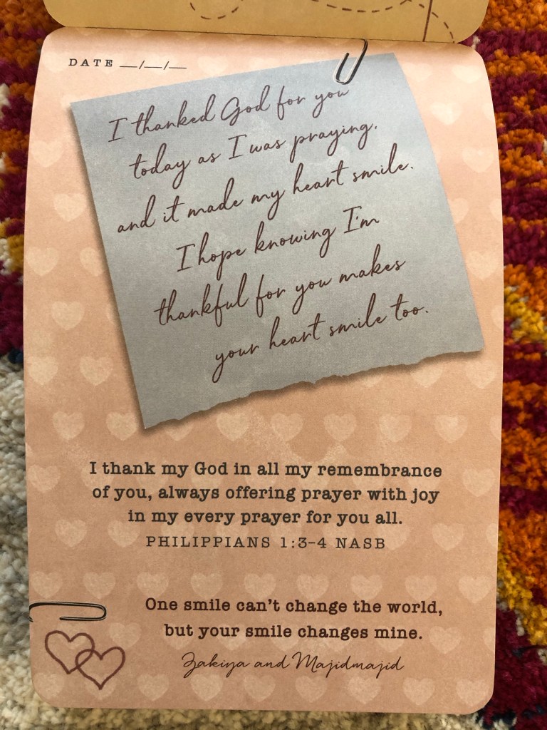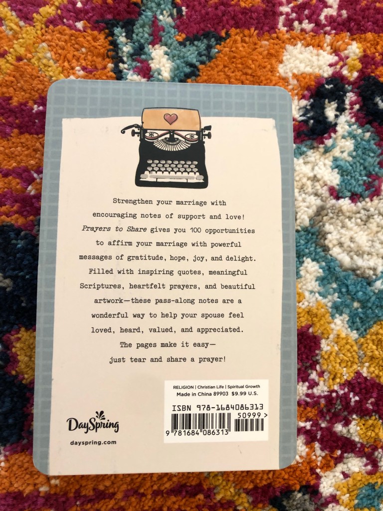 I love that you can put the date on it, that it’s filled with a prayer and also Scripture verses. You can flip it over and write an additional note to your spouse in your handwriting…