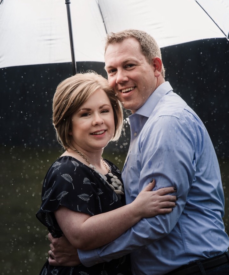 After the family poses were all taken, the photographers invited each couple to come outside and stand in the rain under their giant umbrella for some really great rainy day shots! I love this one of Paul and Whitney!