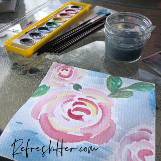 When I was in high school I took two years of art – not because I was gifted – but because I wanted to learn how to paint. It has been years since I’ve painted anything, but recently I had an itch to try my hand at watercolors. I’ve had so much fun! Here’s my first painting using the cheap watercolors I had on hand from Target! I did purchase watercolor paper so I could blend the colors.