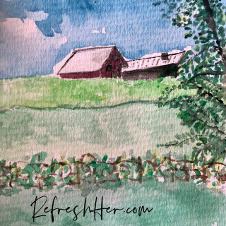 We have so many beautiful barns around us. I decided to snap photos and paint some of them. Here’s the barn that is on my daily walk…
