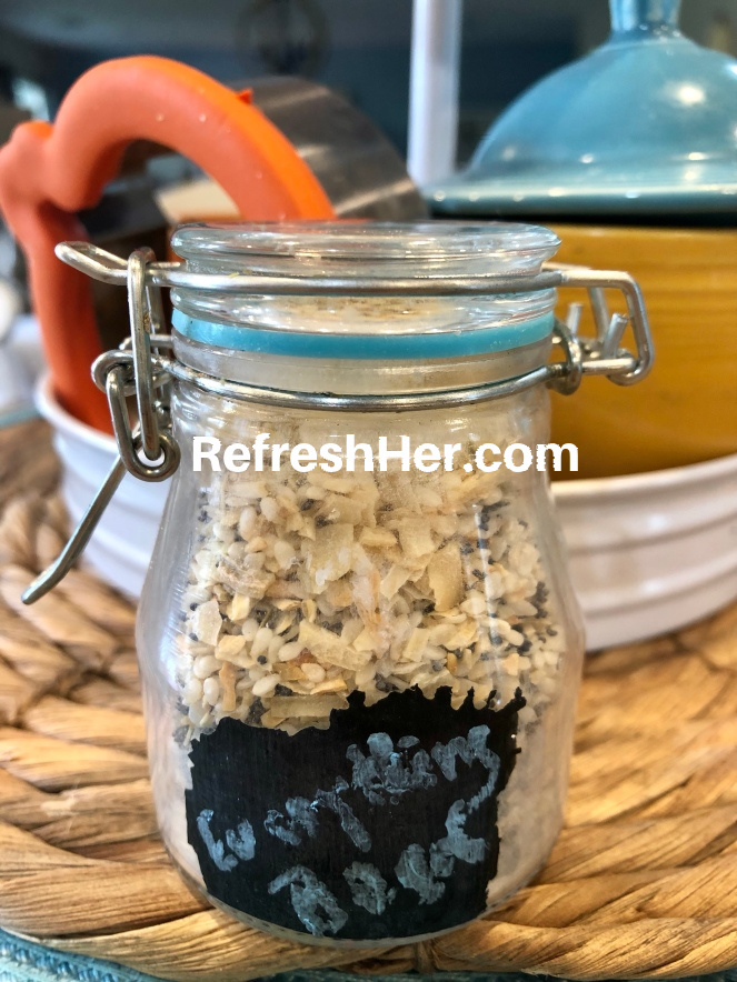 The sweetness comes from a drizzle of honey over all the layers! That little bit of sweetness is the perfect touch! Of course I also sprinkle on Everything But the Bagel Seasoning. I like to make my own. It’s so much cheaper and I can control the ingredients. Let me tell you how I make my Avocado Toast and then I’ll share the Everything Bagel Seasoning.