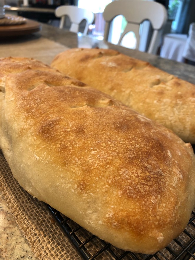 I took the bread and shaped it into the French loaves and placed them on a greased baking sheet.