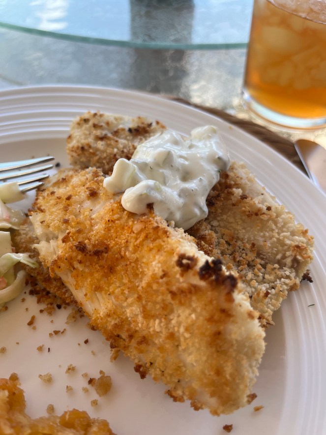 When I need a quick meal idea, I love to make fish. It thaws quickly and it cooks quickly. I found a great, healthy way to make crispy fish without frying it. The recipe came from none other than my favorite source – Cooking Light! The Panko crumbs give it its crunch and the lemon dill sauce adds a great flavor to the fish! Here’s the easy recipe…