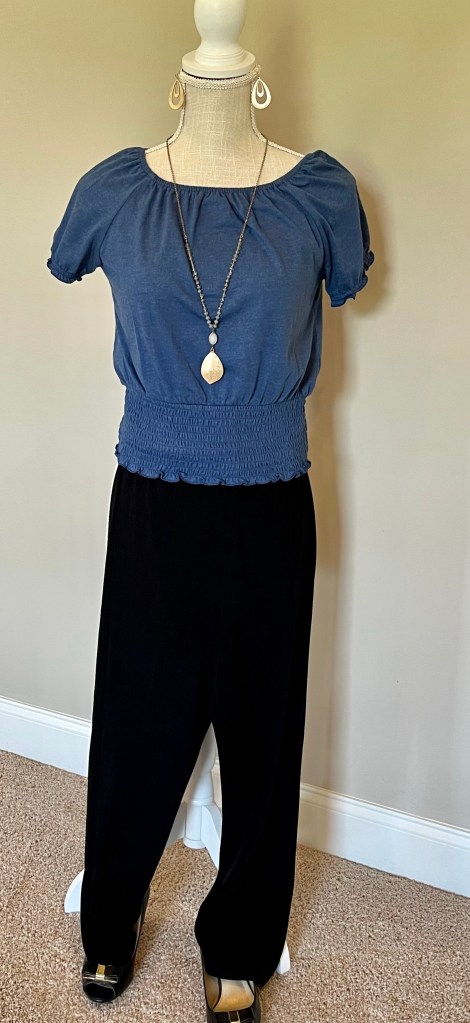 Here are those baggy pants with a fitted top. I think you’ll see what an improvement this makes.