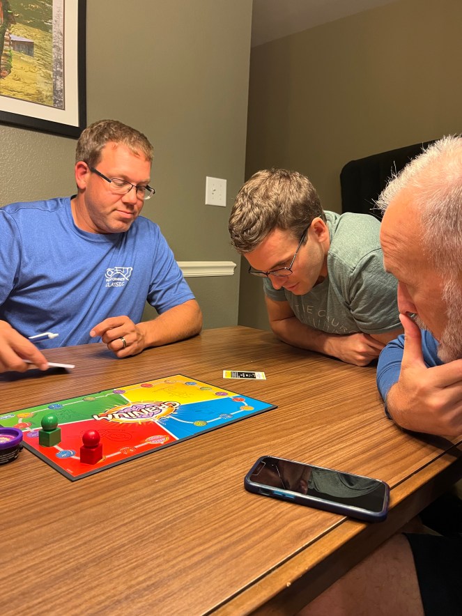 We enjoyed our second Board Game competition…at the table! There was laughter that brought tears as we battled out Cranium and Dutch Blitz. There were so many funny memories and antics that will be rehearsed over and over again! Alli won again. She’s a killer with; Dutch Blitz! I didn’t mind losing, because I may not have won the Chick-Fil-A gift card, but I did get in on all the fun!