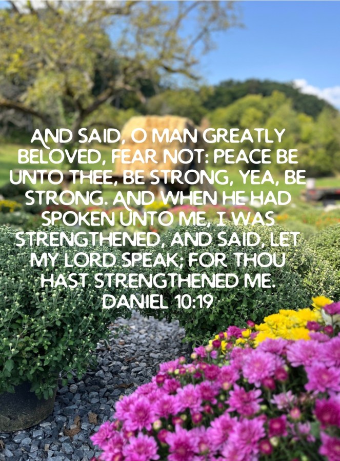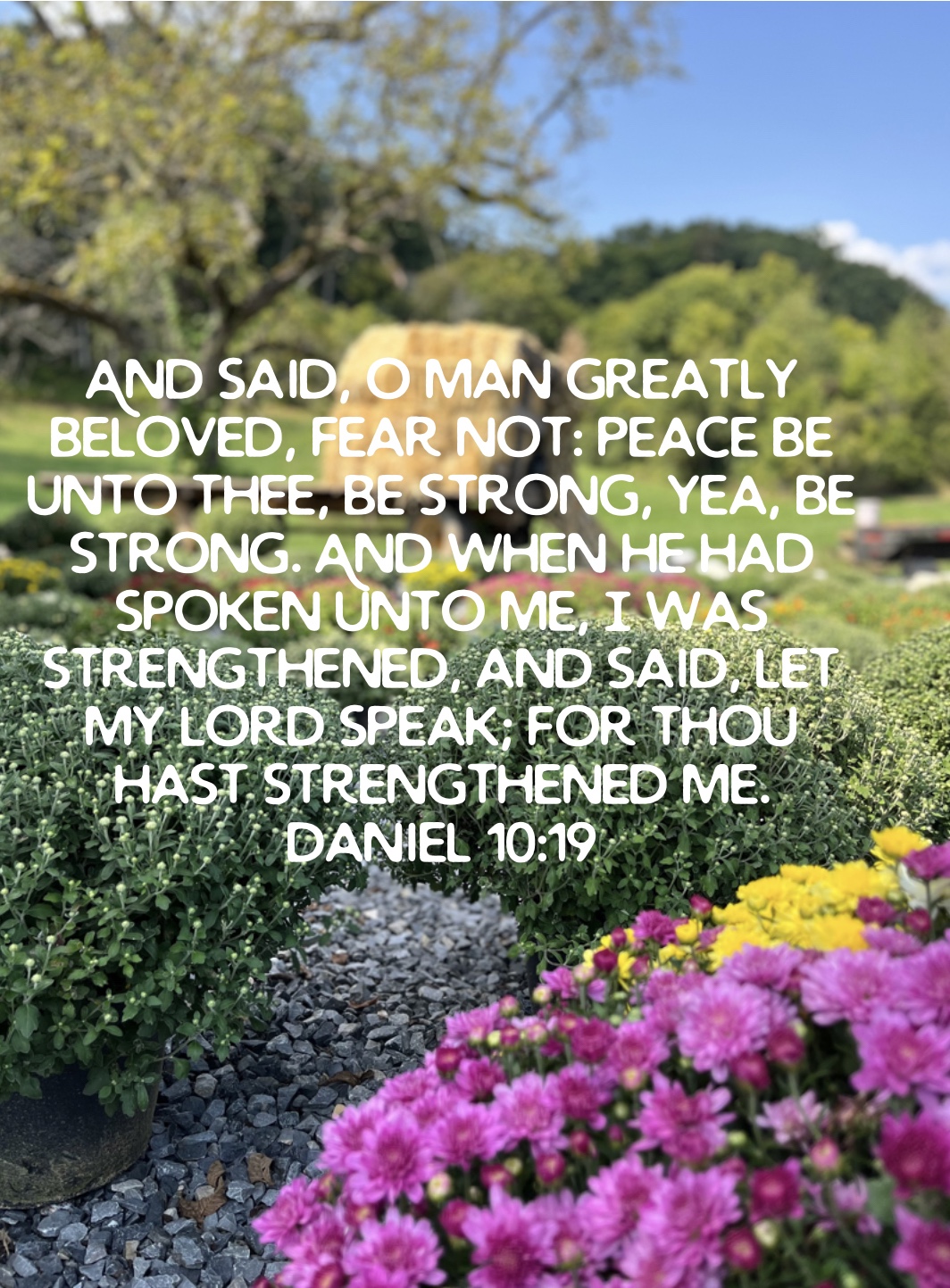 And said, O man greatly beloved, fear not: peace be unto thee, be strong, yea, be strong. And when he had spoken unto me, I was strengthened, and said, Let my lord speak; for thou hast strengthened me.
